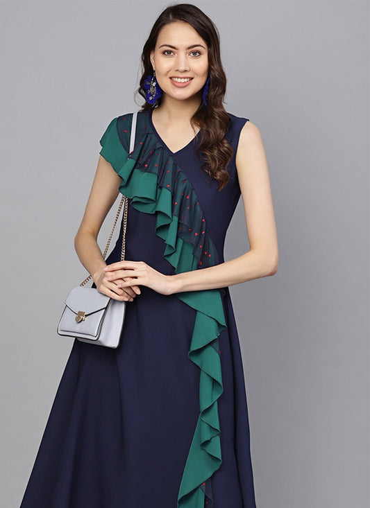 Party Wear Kurti Net Blue Print