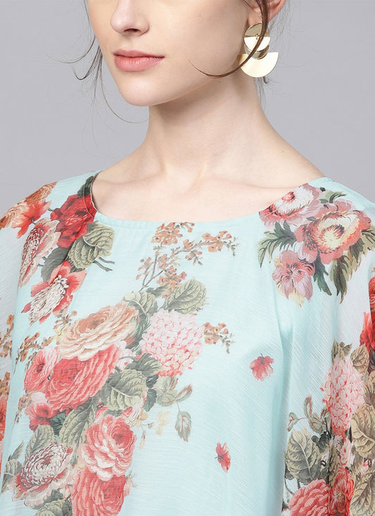 Designer Kurti Georgette Aqua Blue Digital