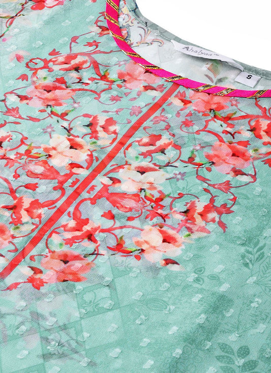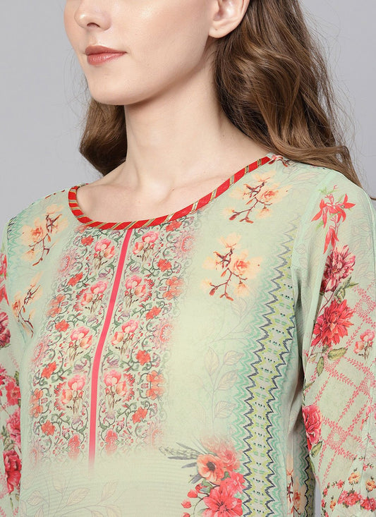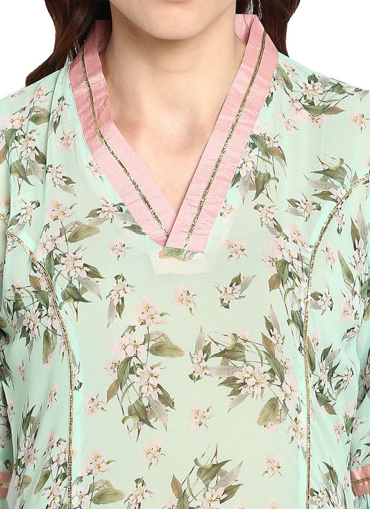Casual Kurti Organza Sea Green Digital
