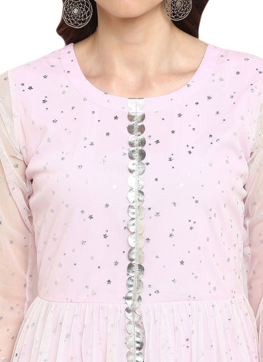 Party Wear Kurti Organza Pink Digital