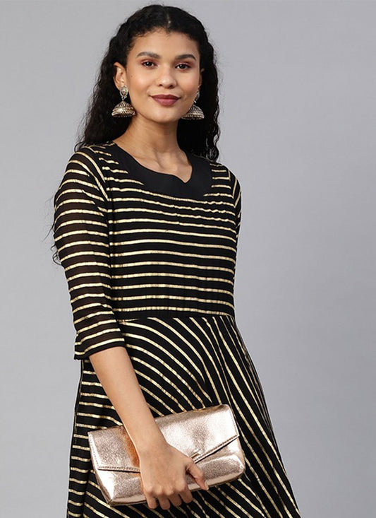 Designer Kurti Crepe Silk Black Foil