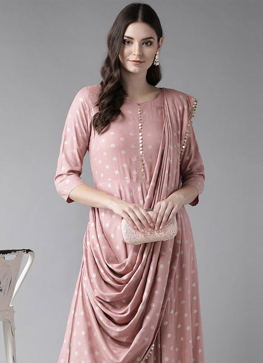 Designer Kurti Crepe Silk Pink Foil