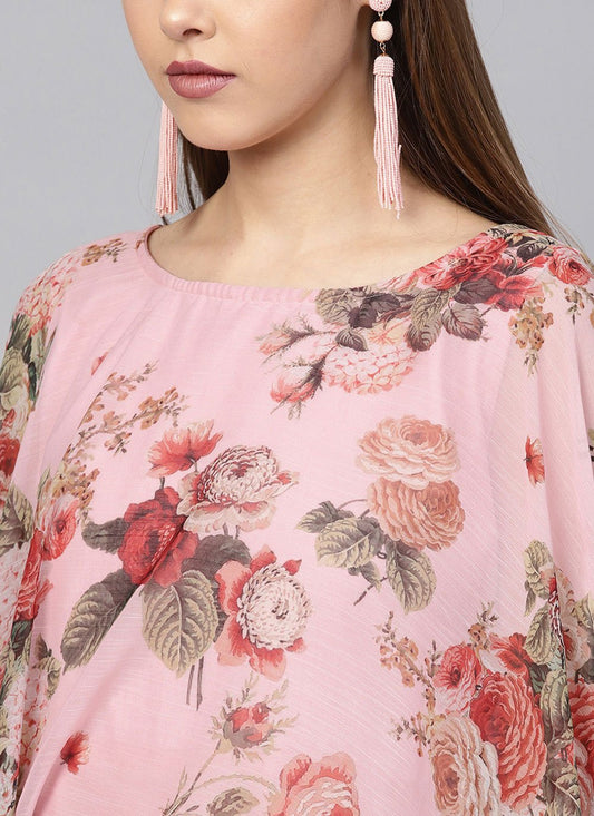 Designer Kurti Poly Silk Pink Digital