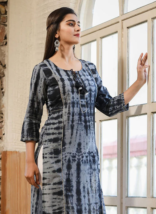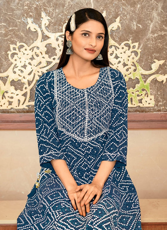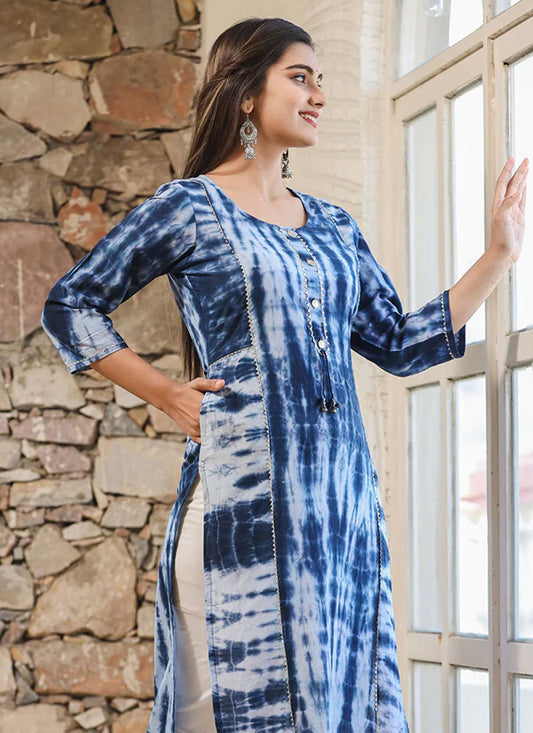 Casual Kurti Rayon Blue Bandhej Kurtis