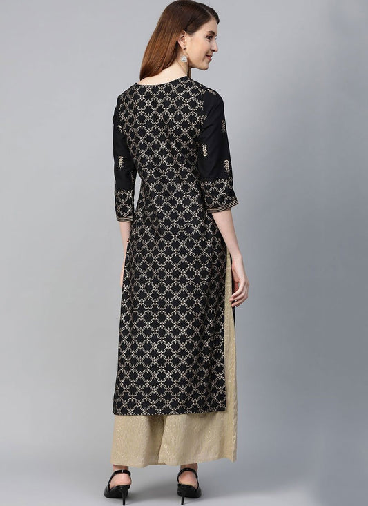 Party Wear Kurti Poly Cotton Black