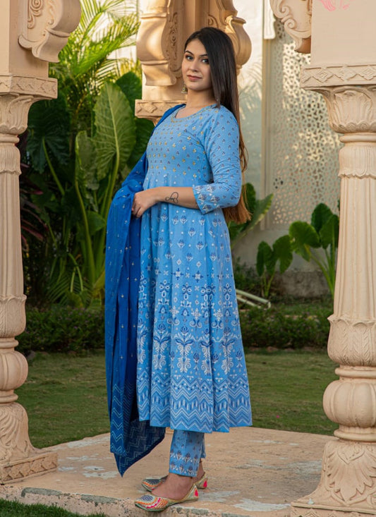 Designer Kurti Cotton Blue Fancy Work