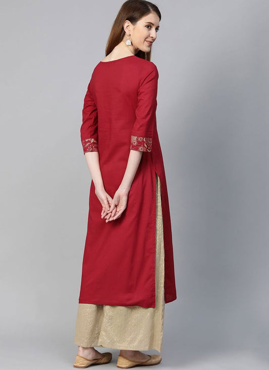Casual Kurti Poly Cotton Maroon Print