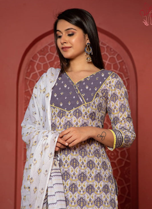 Designer Kurti Cotton Grey Fancy Work