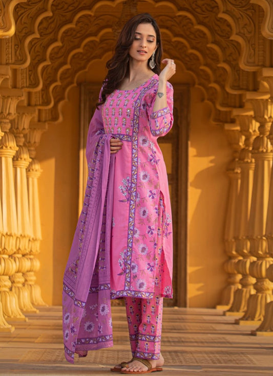 Designer Kurti Cotton Pink Purple Fancy