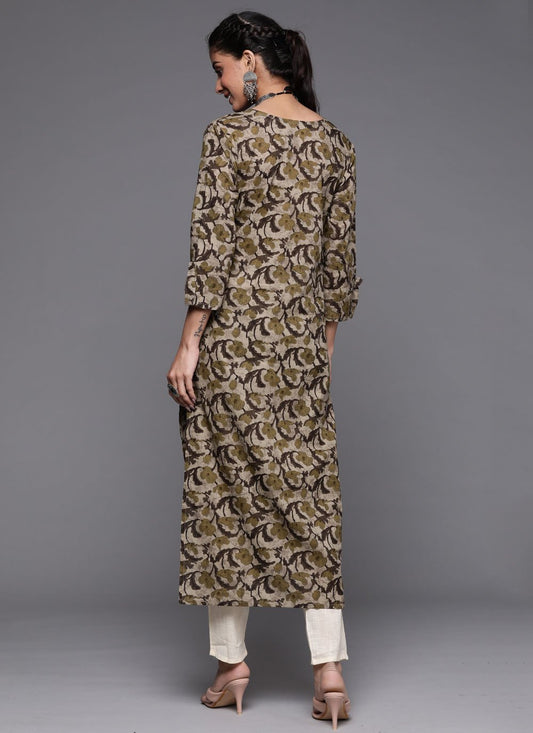 Designer Kurti Cotton Beige White Print