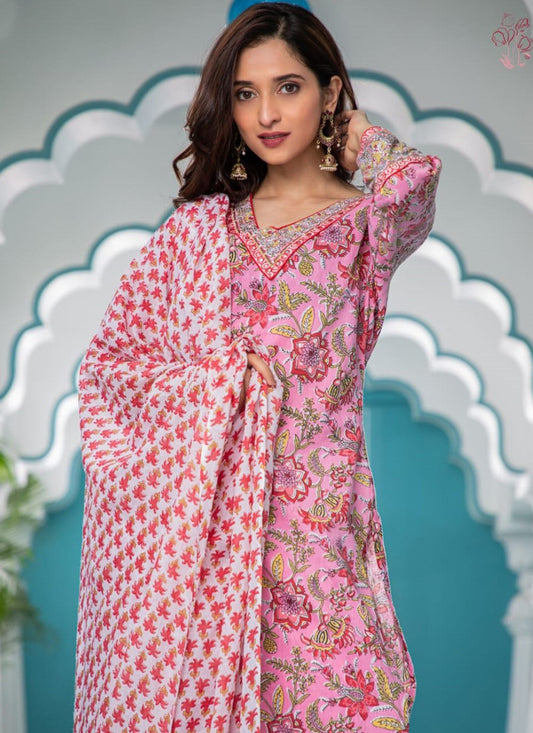 Designer Kurti Cotton Pink Fancy Work