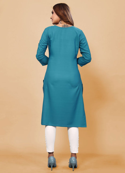 Designer Kurti Rayon Blue Print Kurtis