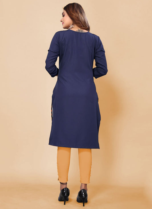 Casual Kurti Faux Crepe Blue Print