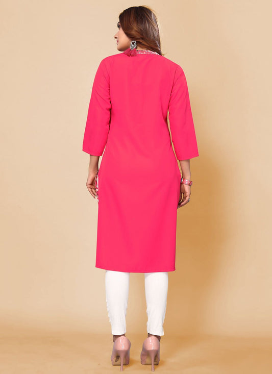 Party Wear Kurti Faux Crepe Pink