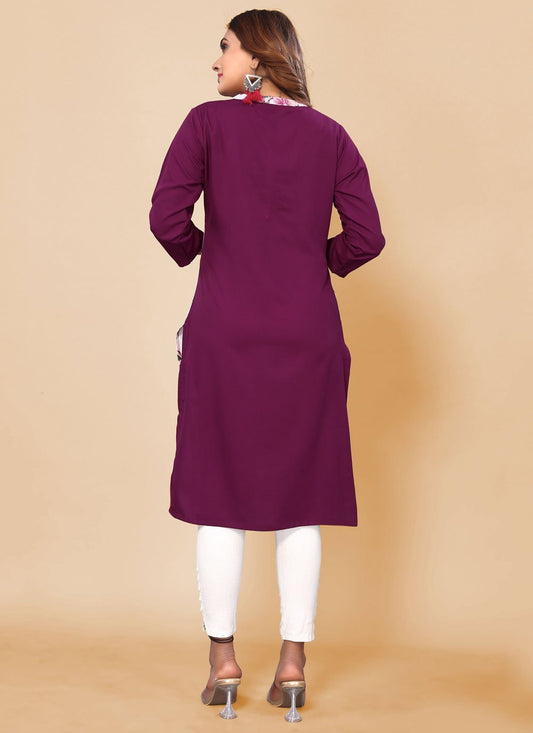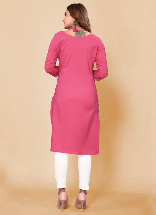 Designer Kurti Rayon Pink Print Kurtis