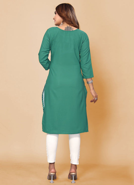 Designer Kurti Cotton Green Print Kurtis