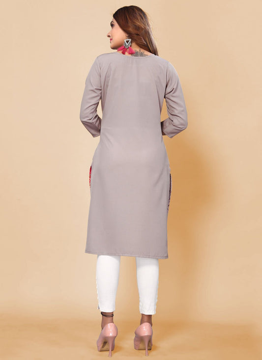 Designer Kurti Rayon Grey Embroidered Kurtis