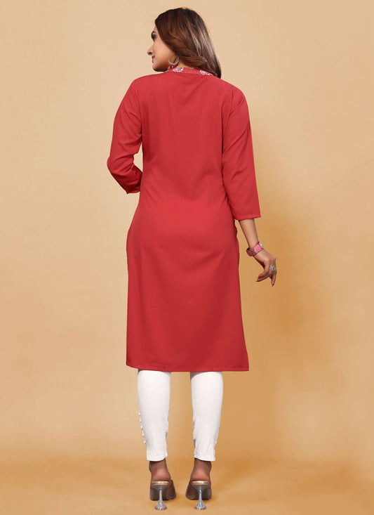 Party Wear Kurti Faux Crepe Red