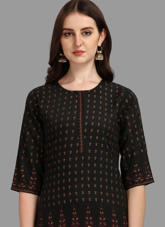 Casual Kurti Rayon Black Print Kurtis