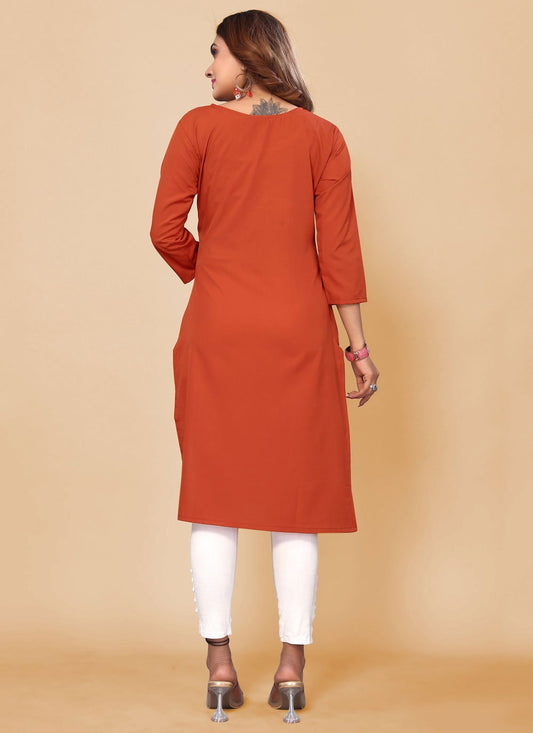 Designer Kurti Cotton Orange Print Kurtis