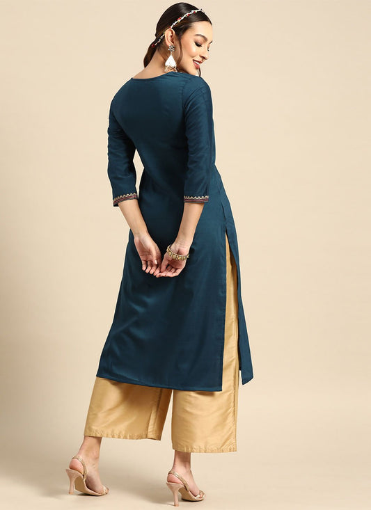 Casual Kurti Chinon Blue Embroidered Kurtis