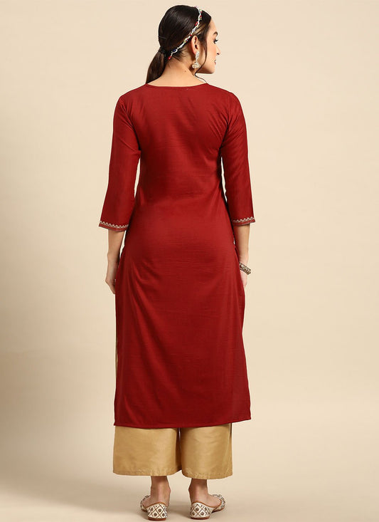 Casual Kurti Chinon Maroon Embroidered Kurtis