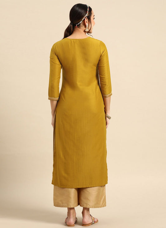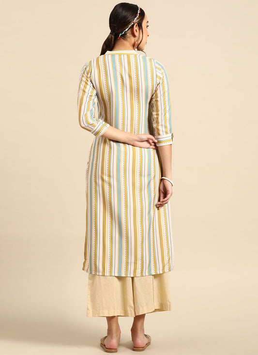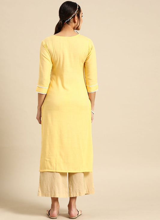 Designer Kurti Rayon Yellow Embroidered Kurtis