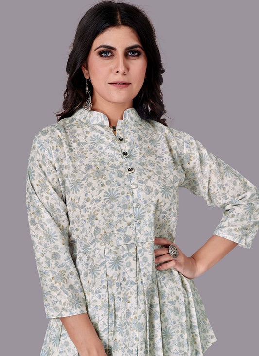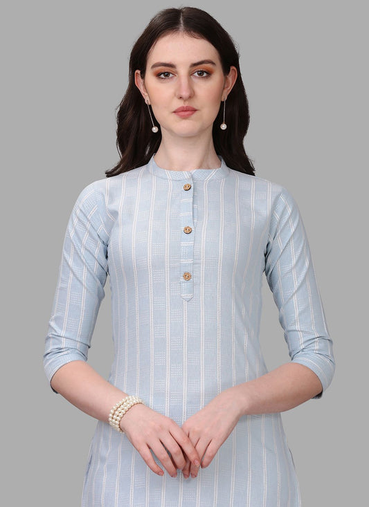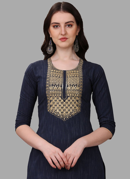 Casual Kurti Cotton Blue Embroidered Kurtis