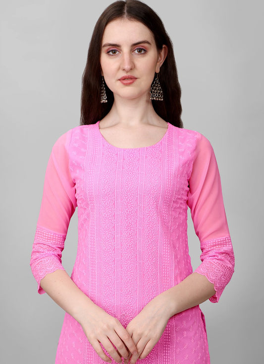 Casual Kurti Rayon Pink Embroidered Kurtis