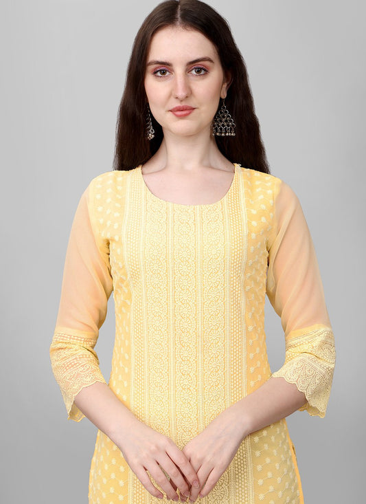 Designer Kurti Rayon Yellow Embroidered Kurtis
