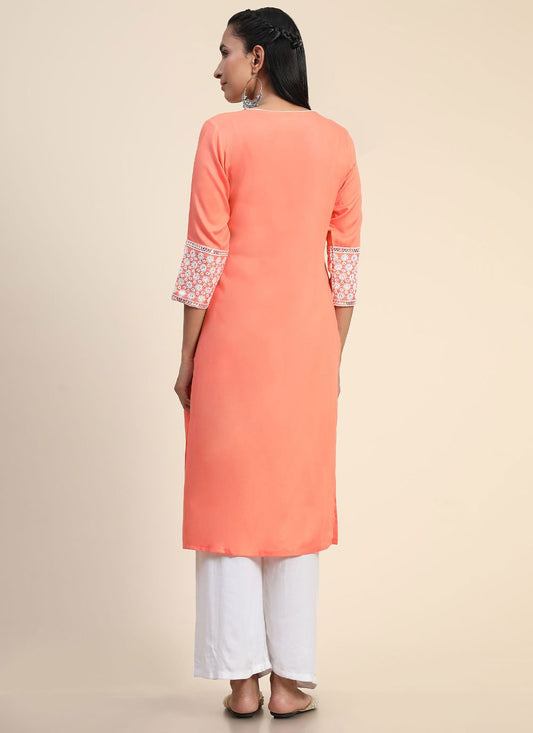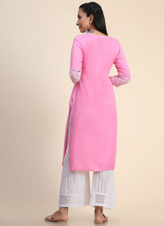 Designer Kurti Rayon Pink Embroidered Kurtis