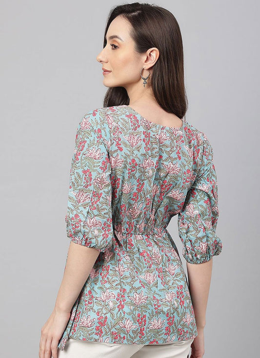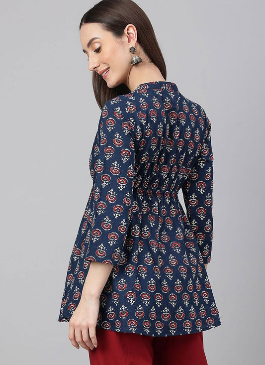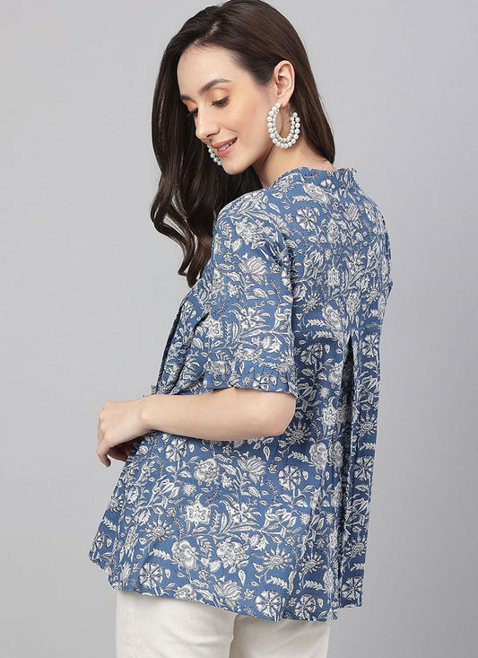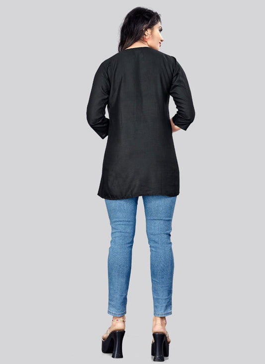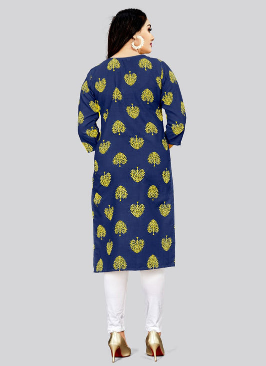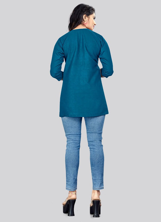 Designer Kurti Rayon Blue Embroidered Kurtis