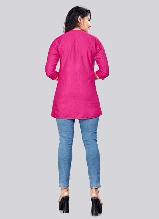Designer Kurti Rayon Pink Embroidered Kurtis