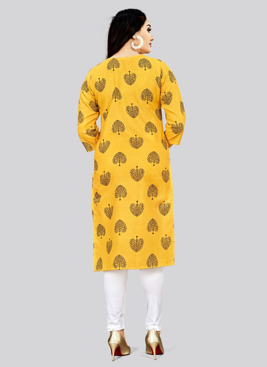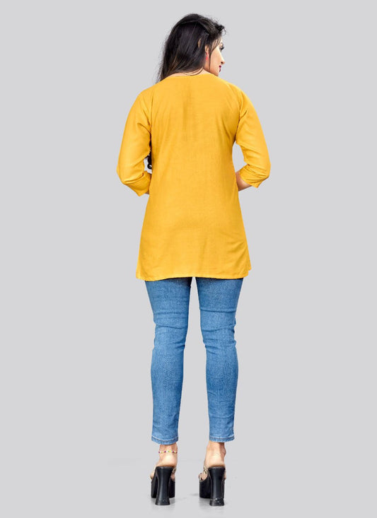 Casual Kurti Rayon Yellow Embroidered Kurtis