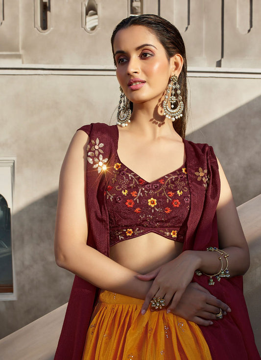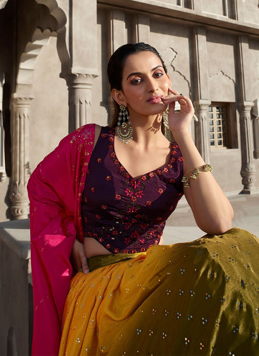Lehenga Choli Chinon Mauve Embroidered Lehenga