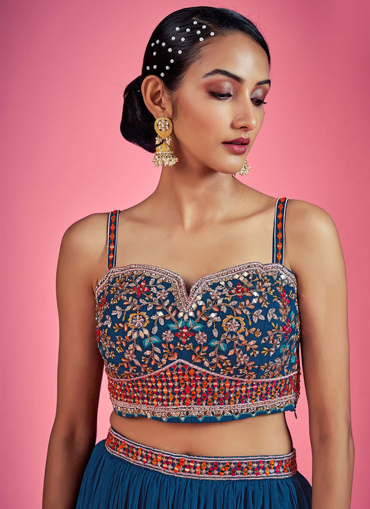 Lehenga Choli Chinon Blue Embroidered Lehenga