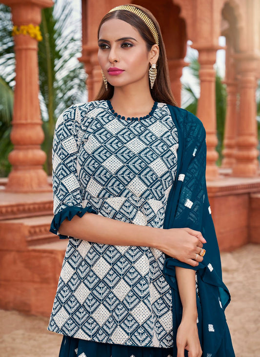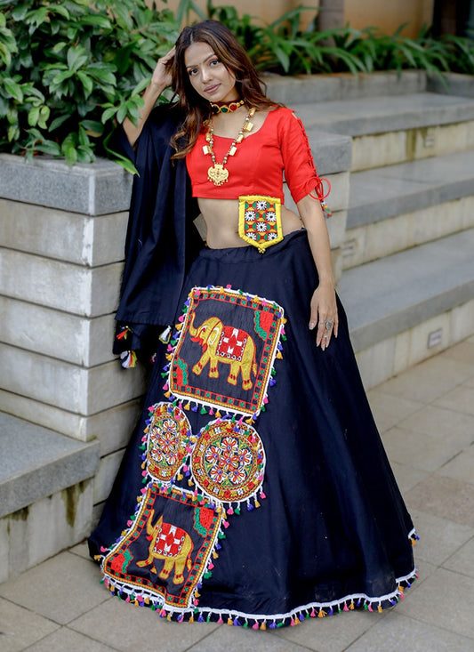 Lehenga Choli Cotton Blue Embroidered Lehenga
