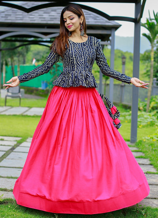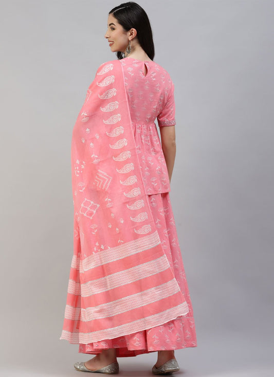Lehenga Choli Cotton Pink Embroidered Lehenga