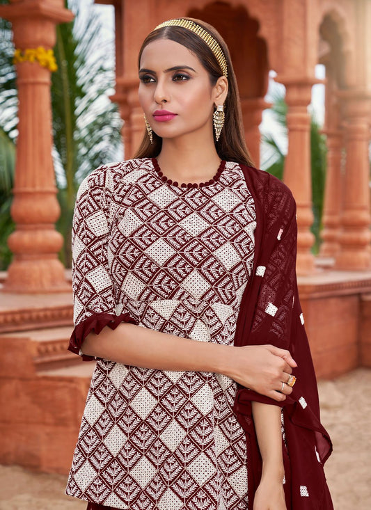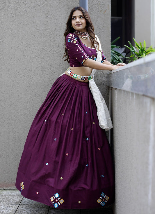 Readymade Lehenga Choli Cotton Maroon Embroidered