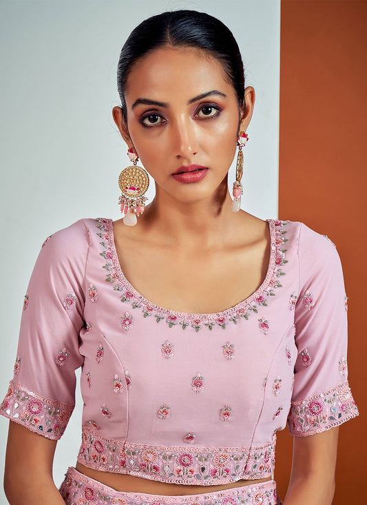 Lehenga Choli Georgette Pink Aari Work