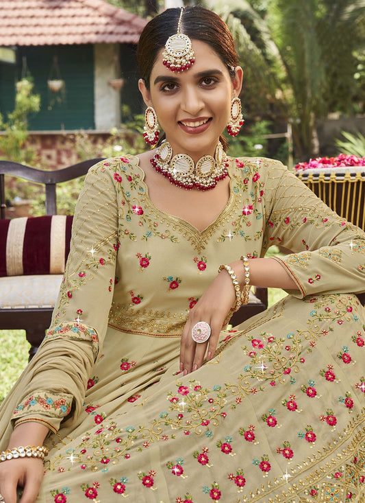 A Line Lehenga Georgette Beige Digital