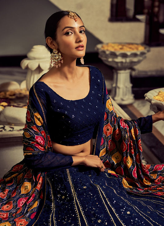 Lehenga Choli Georgette Blue Sequins Lehenga