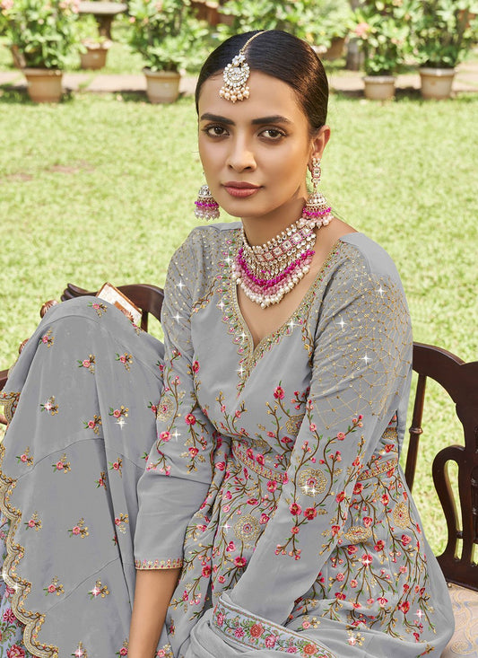 Lehenga Choli Georgette Grey Digital Print