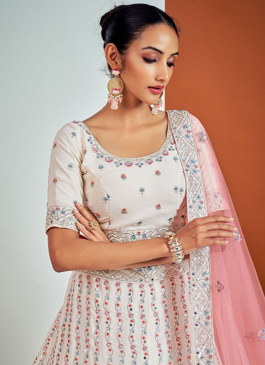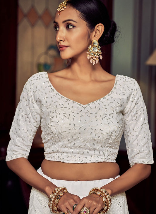 Lehenga Choli Georgette White Mirror Lehenga