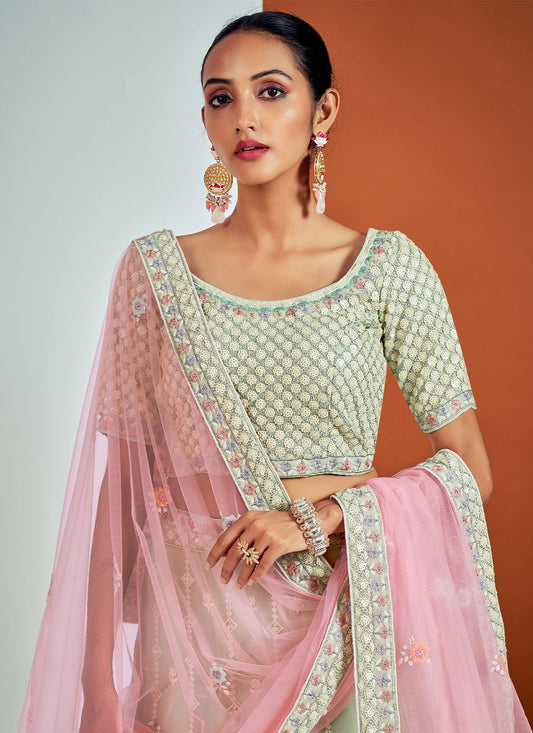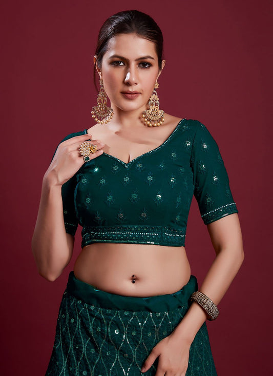 Lehenga Choli Georgette Green Sequins Lehenga