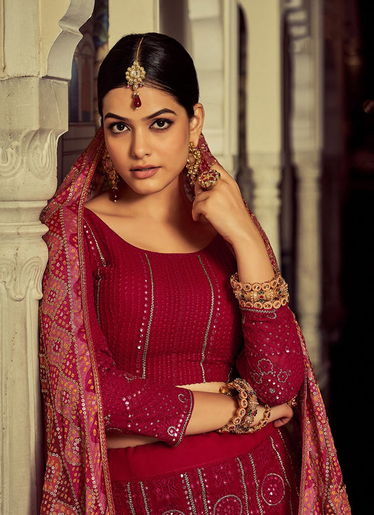 A Line Lehenga Georgette Red Sequins