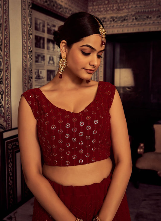 Lehenga Choli Georgette Maroon Embroidered Lehenga