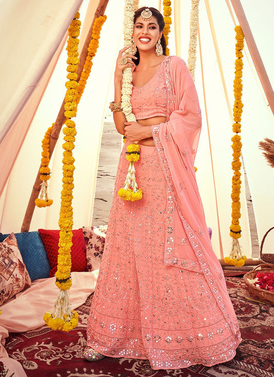 Lehenga Choli Georgette Peach Embroidered Lehenga