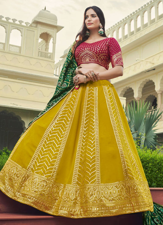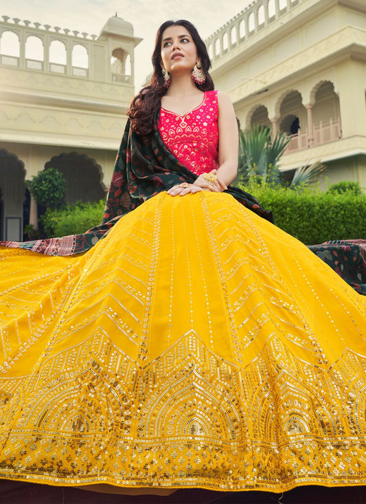 Lehenga Choli Georgette Yellow Embroidered Lehenga