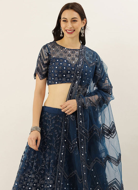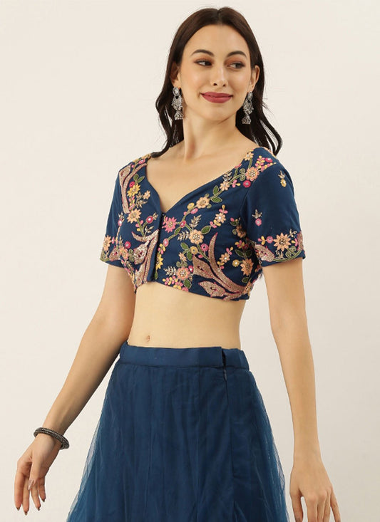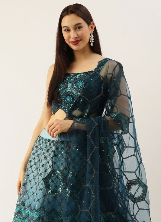 Lehenga Choli Net Turquoise Embroidered Lehenga